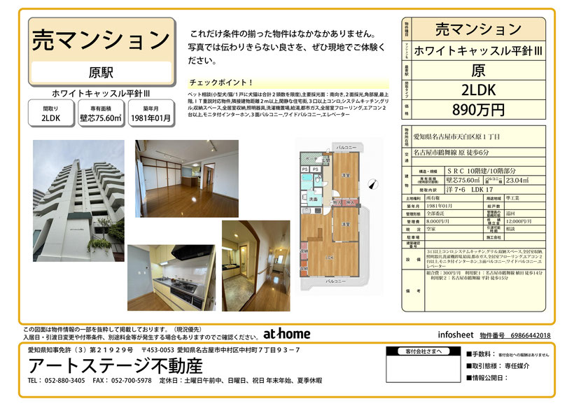 8/8 名古屋市天白区原の売りマンション情報をアップしました。