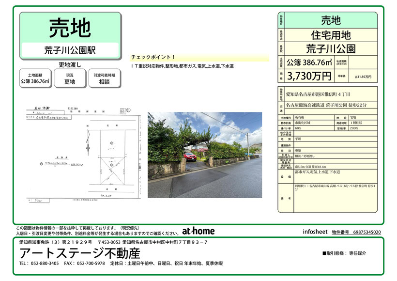 9/3 名古屋市港区惟信町4丁目の売り土地物件をアットホームに掲載しました。